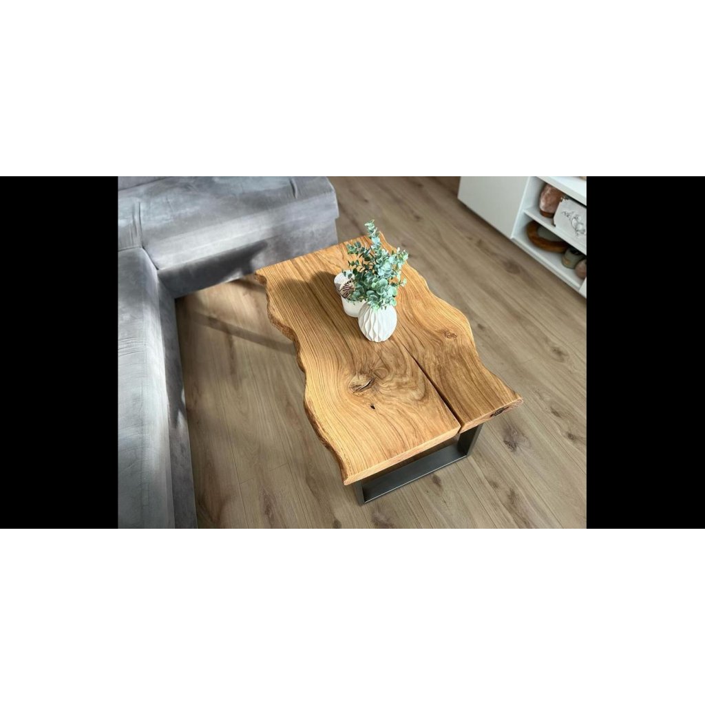 Ručně vyráběný konferenční stolek z masivního dřeva s přirozeným tvarem hrany. Každý kus má svůj vlastní charakter – divoký, surový a naprosto originální.